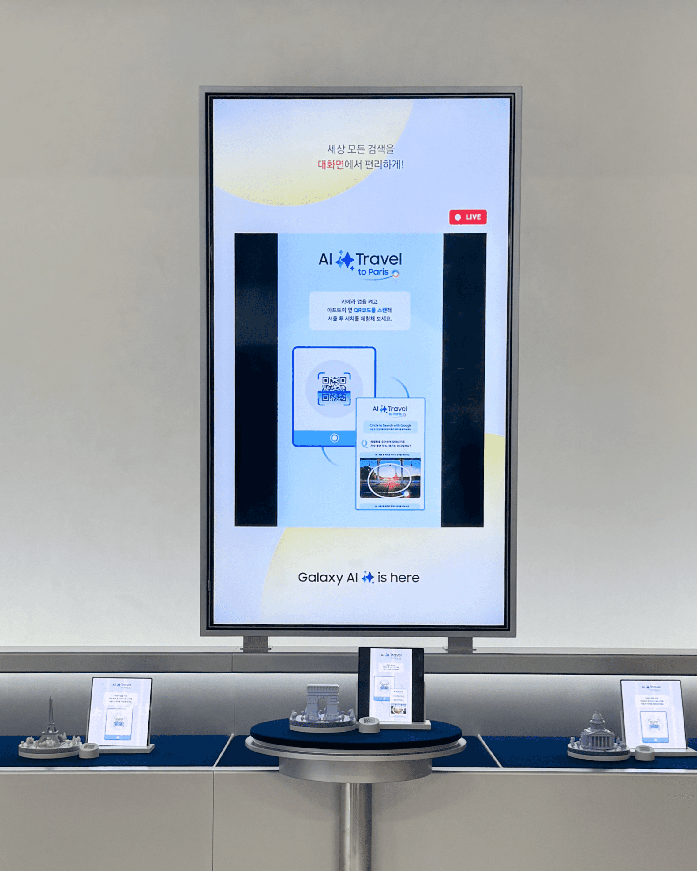 Galaxy Studio가 홍대 삼성스토어, 더현대, 잠실 롯데월드몰에 오픈하여 방문객들에게 Galaxy AI 기능을 직접 체험할 기회를 제공했습니다. 여행과 공항을 테마로 한 Galaxy Experience Space에서 AI 기능을 색다르게 경험할 수 있으며, 체험존 솔루션 개발과 디자인을 통해 번역, Flex Cam, Flex Window, Circle to Search 등 업그레이드된 기능과 신제품을 자연스럽게 체험할 수 있도록 지원했습니다.