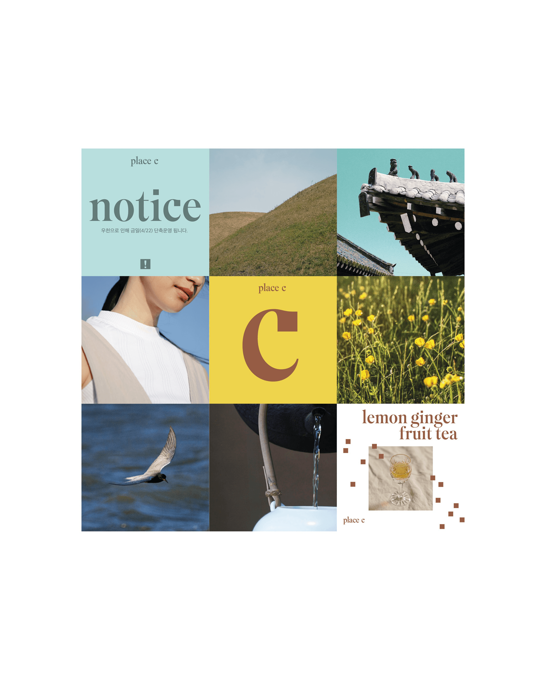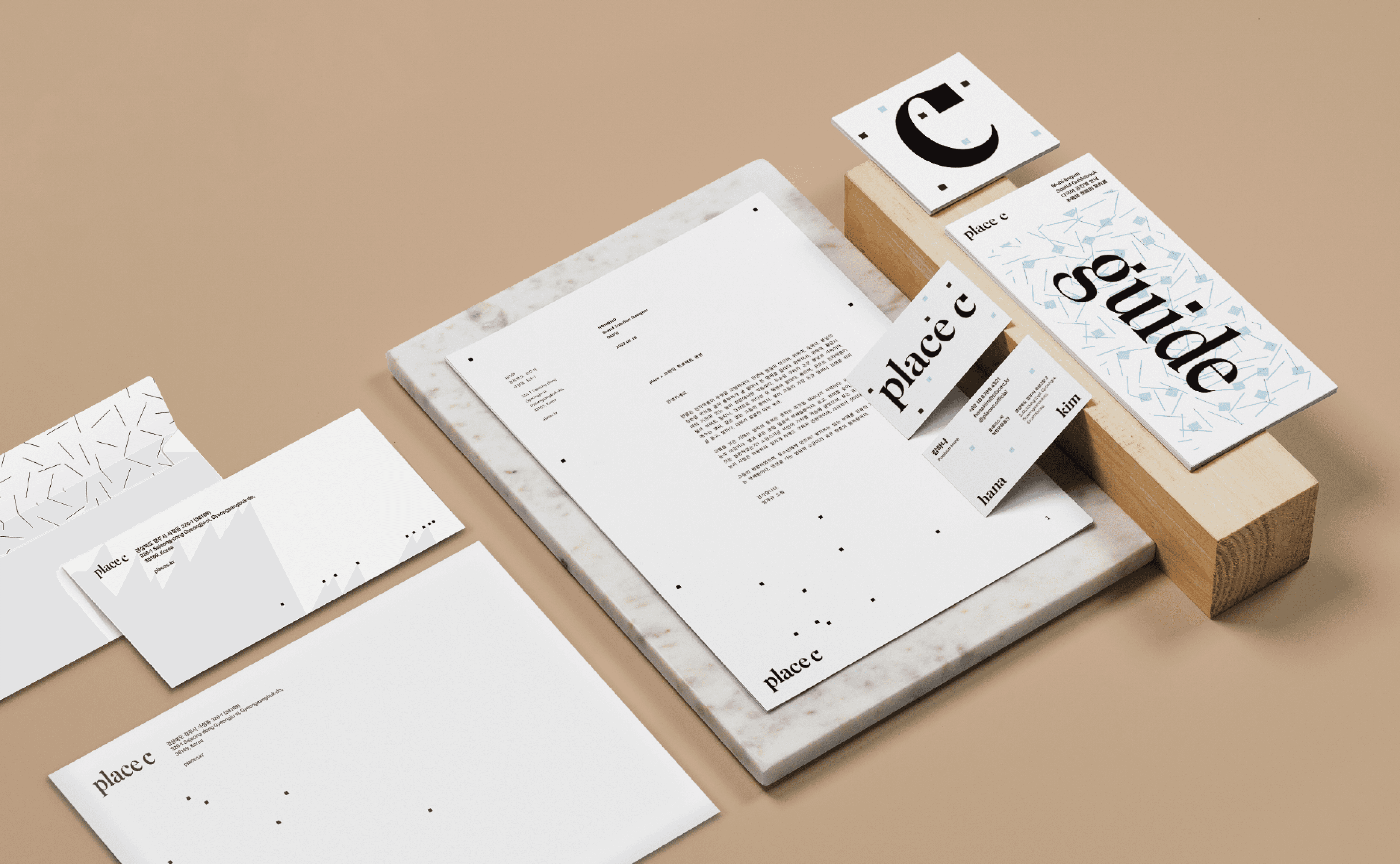 Place C is a cultural art space in Gyeongju that merges nature and heritage in a renovated Hanok. Its identity combines a custom serif typeface with a flexible square motif to express values of education, play, relaxation, and sustainability. The design applies seasonal colors from the garden and integrates interactive elements to invite deeper artistic experiences. A consistent graphic system, including pictograms based on type features, supports a unique visual voice. place c positions itself as a community hub for cultural enrichment and artistic coexistence.